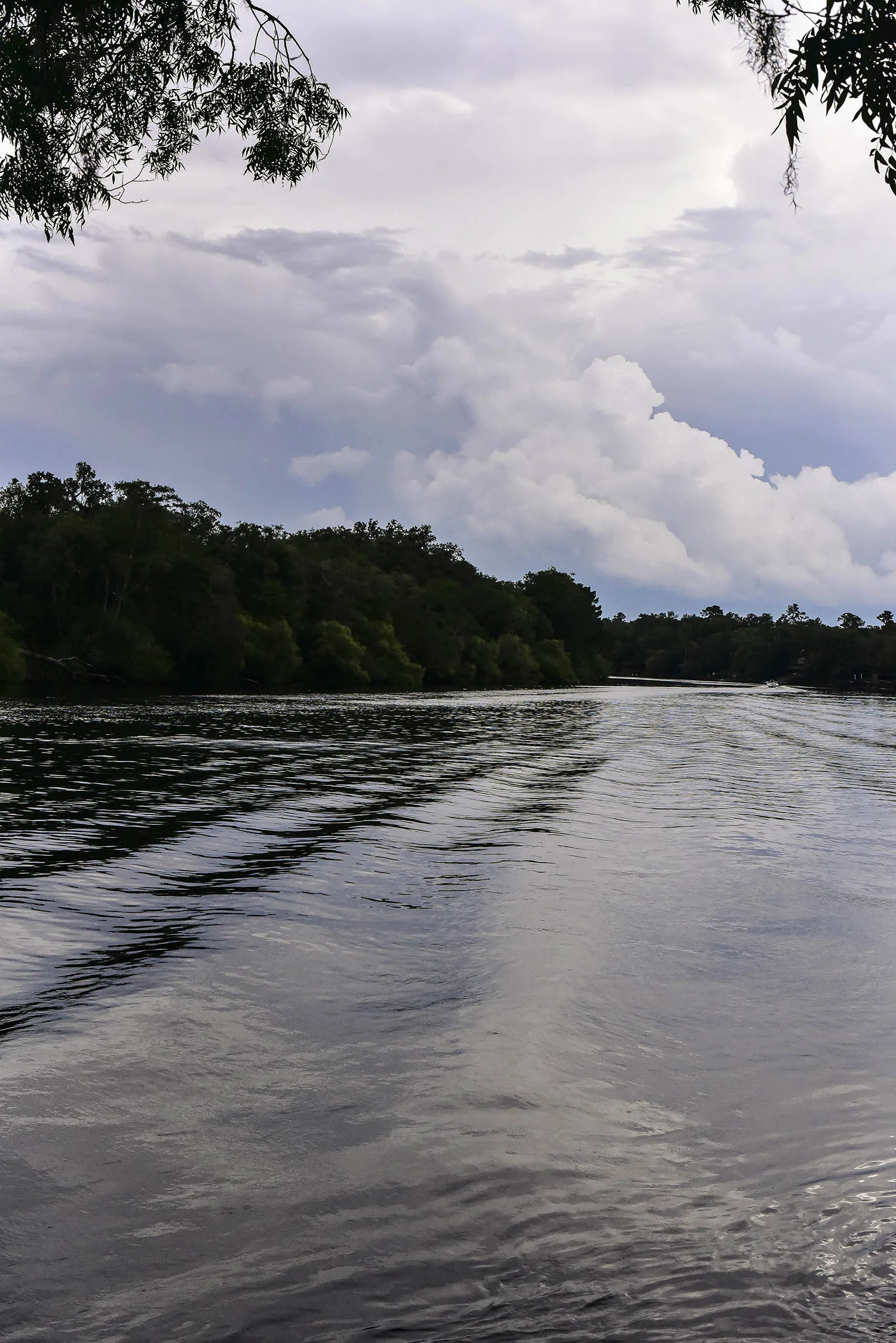 Summer's Silver and Sylvan Scenery on the Suwannee River (sometimes alliteration is irresistible!). But really, a trip to the Suwannee River in Florida is a sweet adventure of long back roads, overhung at times with huge old oaks and bordered by lush green pastures and swampy cypress glades. The Suwannee meanders out of the Okefenokee Swamp in Georgia and flows some 266 blackwater miles to the Gulf of Mexico. It is an unspoiled Wild and Scenic river with hundreds of artesian springs along its length, 21 first magnitude (out of a total 33 in Florida). So though the water is stained dark by tannins, take heart; you can find blue spring holes small and large without much effort if, like me, you can't wait to jump in. Just watch out for the huge sturgeon!